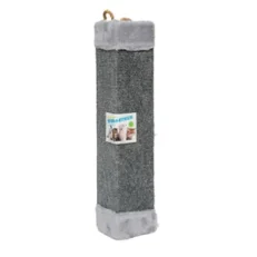 Когтеточка Пухнастики столбик на подставке (джут) серая