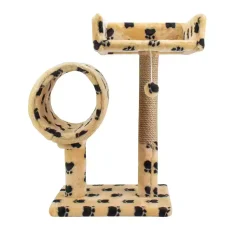 Когтеточка Пухнастики с полкой и полутоннелем, (джут),бежевые лапки