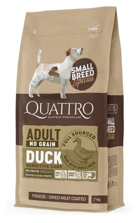 Quattro SB adult dog with duck, корм с уткой для взрослых собак мелких пород