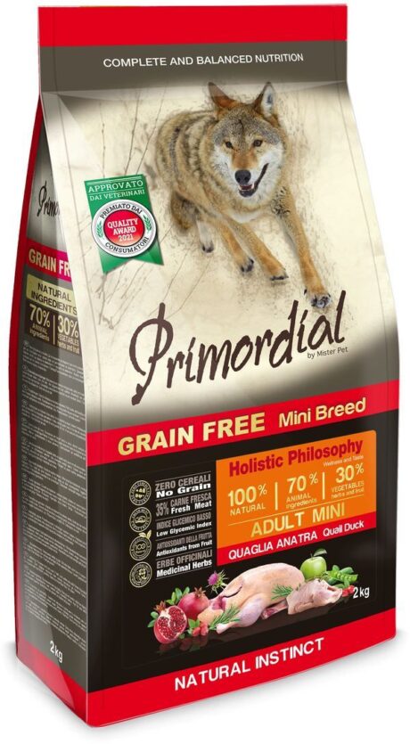 PRIMORDIAL, сухой корм с перепелкой и уткой для взрослых собак мелких пород
