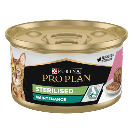 PURINA PRO PLAN STERILISED 85g кусочки в паштете с тунцом и лососем для стерилизованных кошек