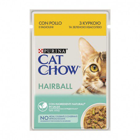 ВЛАЖНЫЙ КОРМ ДЛЯ КОШЕК CAT CHOW HAIRBALL С КУРИЦЕЙ И ЗЕЛЕНОЙ ФАСОЛЬЮ В СОУСЕ 85Г