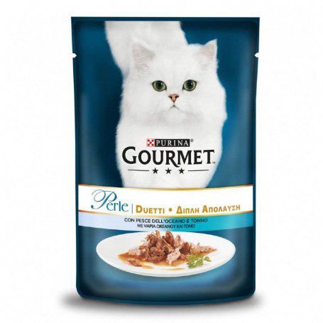 PURINA ВЛАЖНЫЙ КОРМ ДЛЯ КОШЕК GOURMET PERLE DUO С ОКЕАНИЧЕСКОЙ РЫБОЙ И ТУНЦОМ В СОУСЕ 85Г