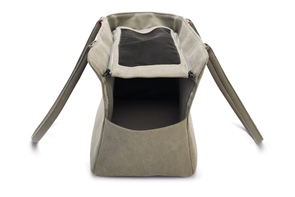 Модная наплечная сумка для собаки изготовлена из прочного холста. Внутри сумки есть мягкий коврик, что придает больше комфорта для собаки. Верх сумки имеет сетку, поэтому в сумке всегда достаточно свежего воздуха для вашего маленького друга. У сумки есть маленький крючок, который вы можете прикрепить к ошейнику для дополнительной безопасности. В удобном кармане на передней части сумки вы можете нести небольшие вещи, например лакомство или расческу.