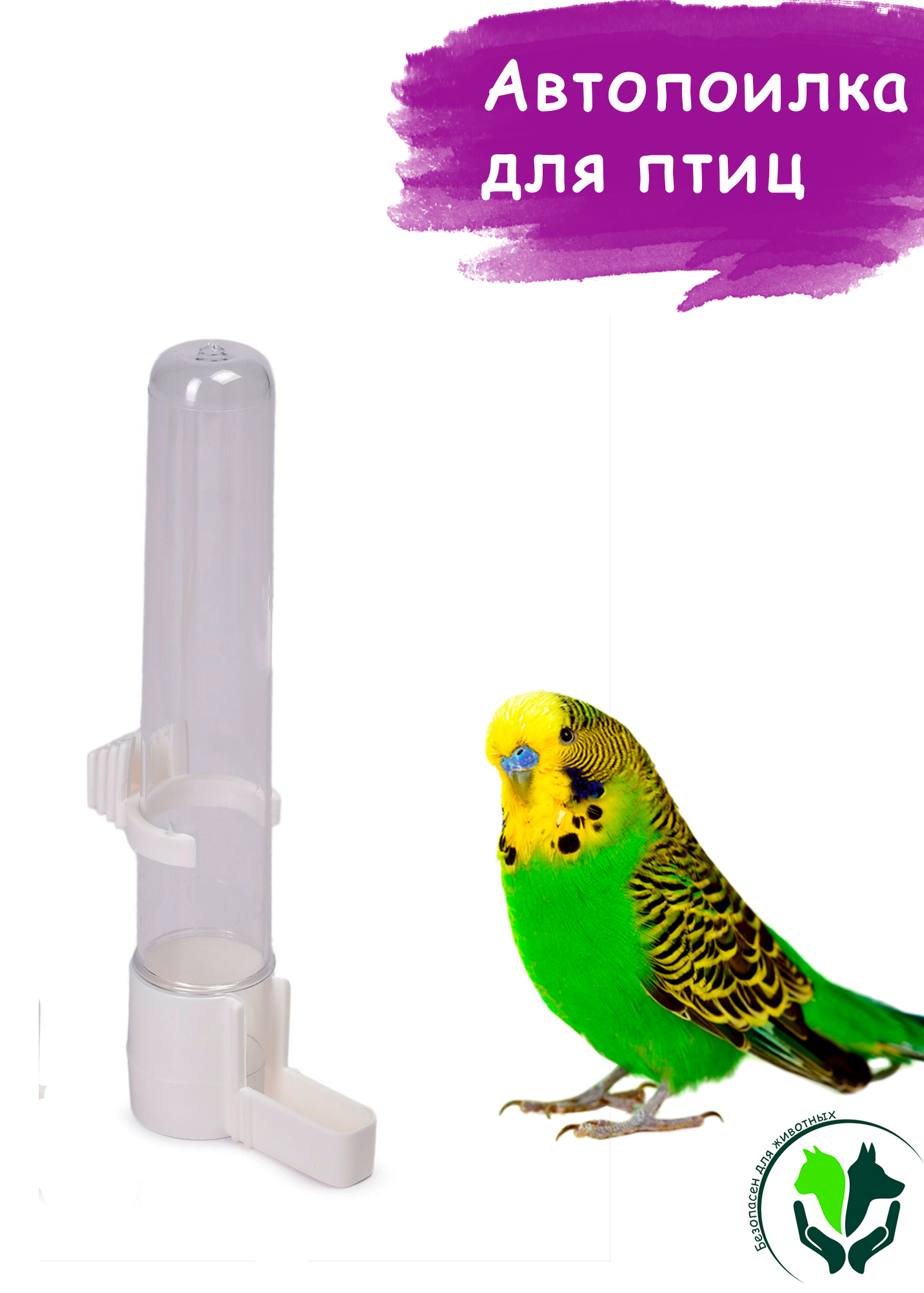 Автоматическая поилка для попугаев, разн. цв. 14*4см,35060