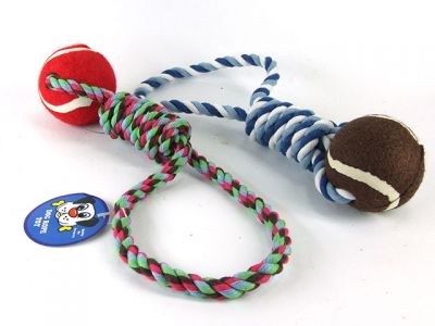 Веревочная игрушка с мячом, разные цвета, (41003)