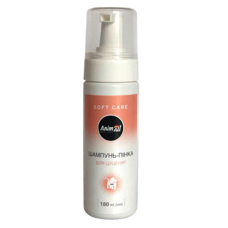 Шампунь-пенка AnimAll для щенков — новое слово в категории товаров для гигиены животных: благодаря специальному дозатору шампунь мгновенно превращается в облако воздушной пены. Пузырьки, как магнит притягивают грязь, легкая текстура деликатно очищает, не раздражая кожу.