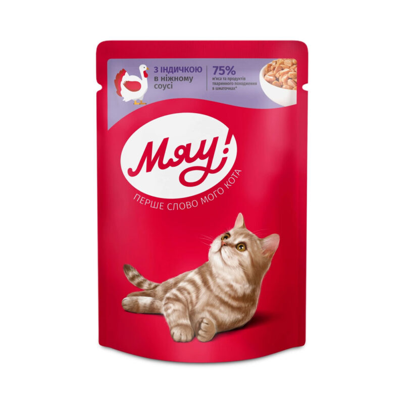 Будьте первым, кто оставит отзыв для “Мяу! Влажный корм для кошек с индейкой в соусе 85г”