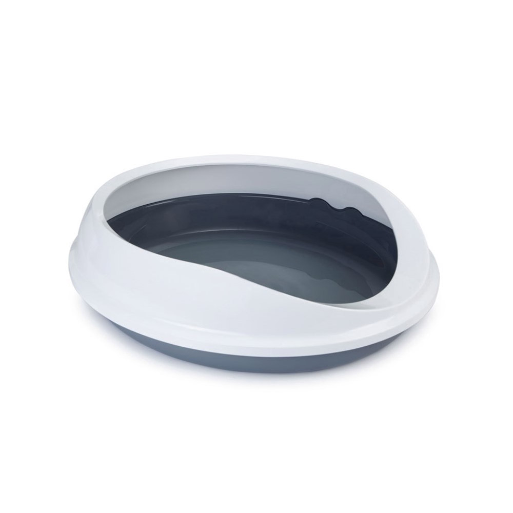 Большой удобный туалет с современным дизайном, с бортиком для защиты помещения и с удобным входом.