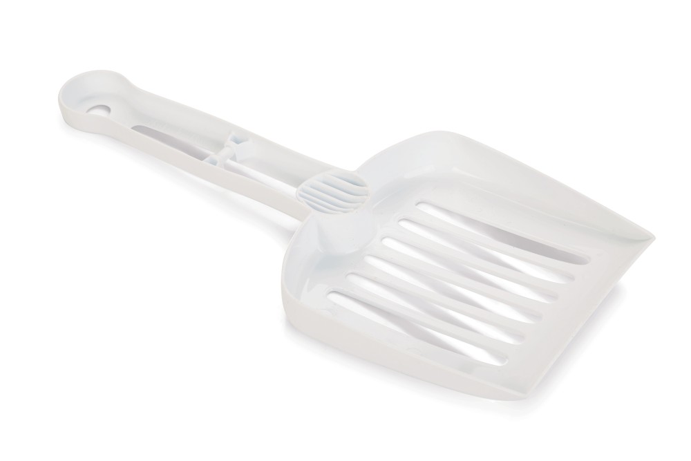 Изготовлен из твердого пластика и подходит для любого типа наполнителя. Этот туалет оснащен совком для мусора.