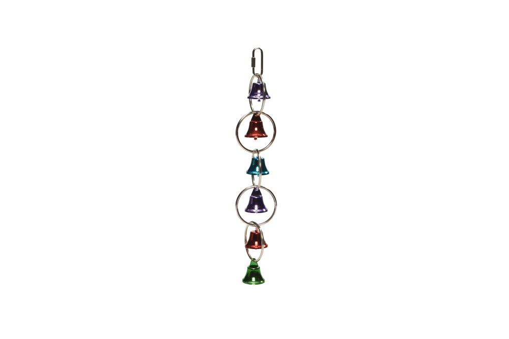 Игрушка Beeztees Metal Bird с колокольчиками — отличное дополнение к клетке для птиц. Эта игрушка содержит не менее пяти колец с шестью маленькими колокольчиками. Колокольчики доставят вашему маленькому пернатому другу дополнительное игровое удовольствие. Игрушку легко повесить с помощью крючка, крепящегося сверху.