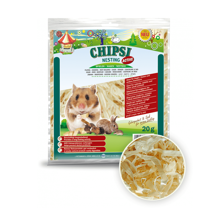 Ваш питомец будет чувствовать себя прекрасно! CHIPSI NESTING ACTIVE – это чистая природа, потому что она получена из мягкой древесины. Без каких-либо химических добавок, он очень эффективен в борьбе с бактериями и, кроме того, является экологически чистым и на 100 % биоразлагаемым.