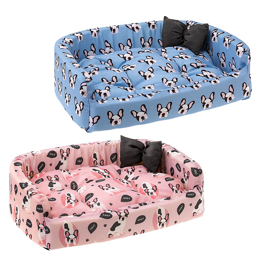 Очень красивый, яркий лежак Harris Woof является диванчиком из хлопка с бортиками, внутреннее пространство которого заполнено съёмной двусторонней подушкой с разным окрасом. Там собака сможет отлично поспать в тепле и комфорте.