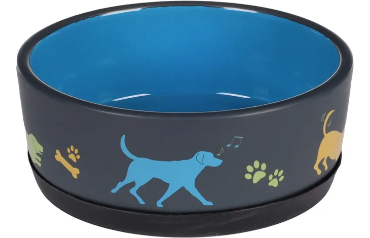 Миска керамическая DOG CORI синяя со съемным резиновым противоскользящим кольцом.
