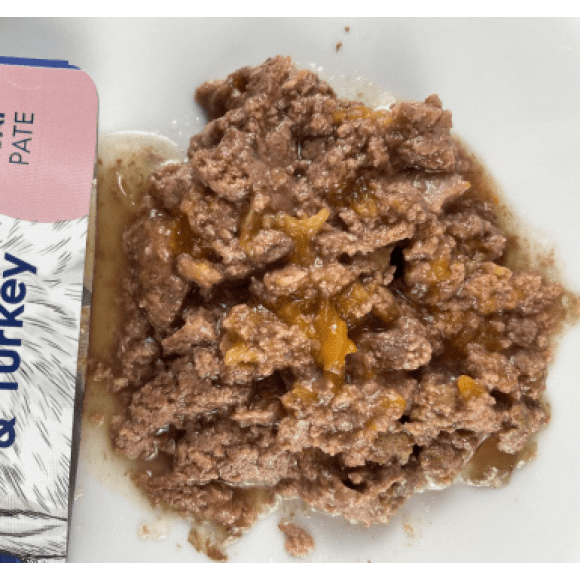Состав: Мясо курицы (42%), мясо индейки (26%), бульон, тыква (4%), минеральные вещества, дрожжевые продукты, инулин цикория, морские водоросли. Пищевые добавки (на кг): витамин E 20 МЕ, Таурин 1200 мг, L-Карнитин 10 мг, Железо 20 мг, Цинк 20 мг, Медь 2 мг, Магний 2 мг, Селен 0.02 мг