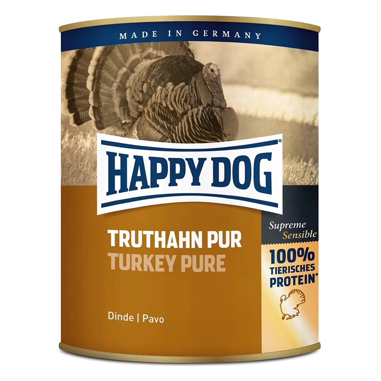 Happy Dog 100% Индейка , влажный корм для собак изготавливается исключительно из свежего мяса, без использования сои, растительных добавок, а также без красителей и консервантов.