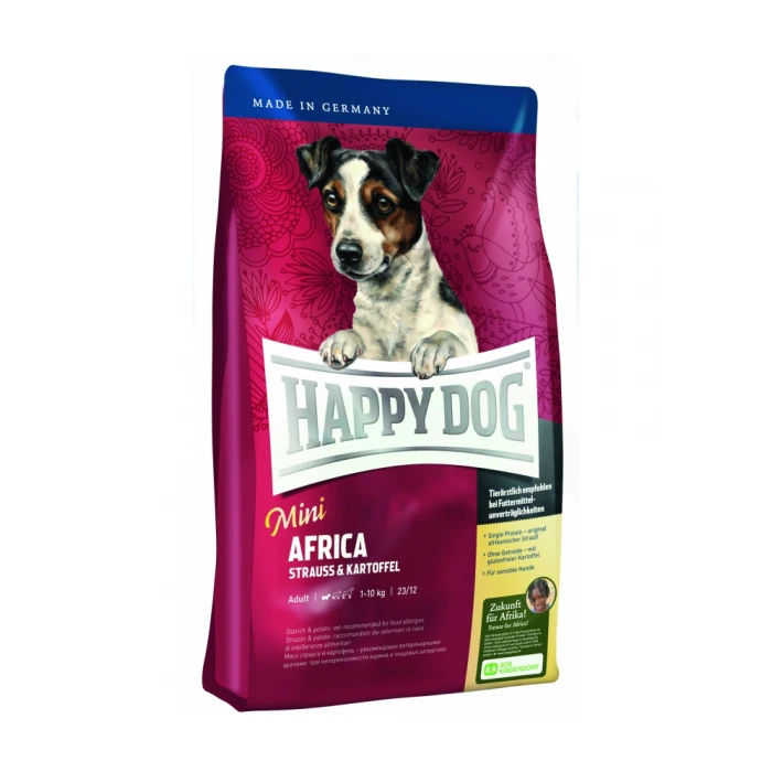 Полнорационный корм класса супер-премиум Happy Dog Mini Africa идеален для всех требовательных лакомок небольшого размера, которые предпочитают нестандартный корм или очень разборчивы в еде. Он хорошо подходит также для собак мелких пород с чувствительным пищеварением, так как учитывает их особые потребности.
