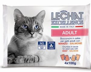 Удобная групповая упаковка из 4 пакетиков по 100 грамм с вкусными кусочками в соусе для взрослых кошек.