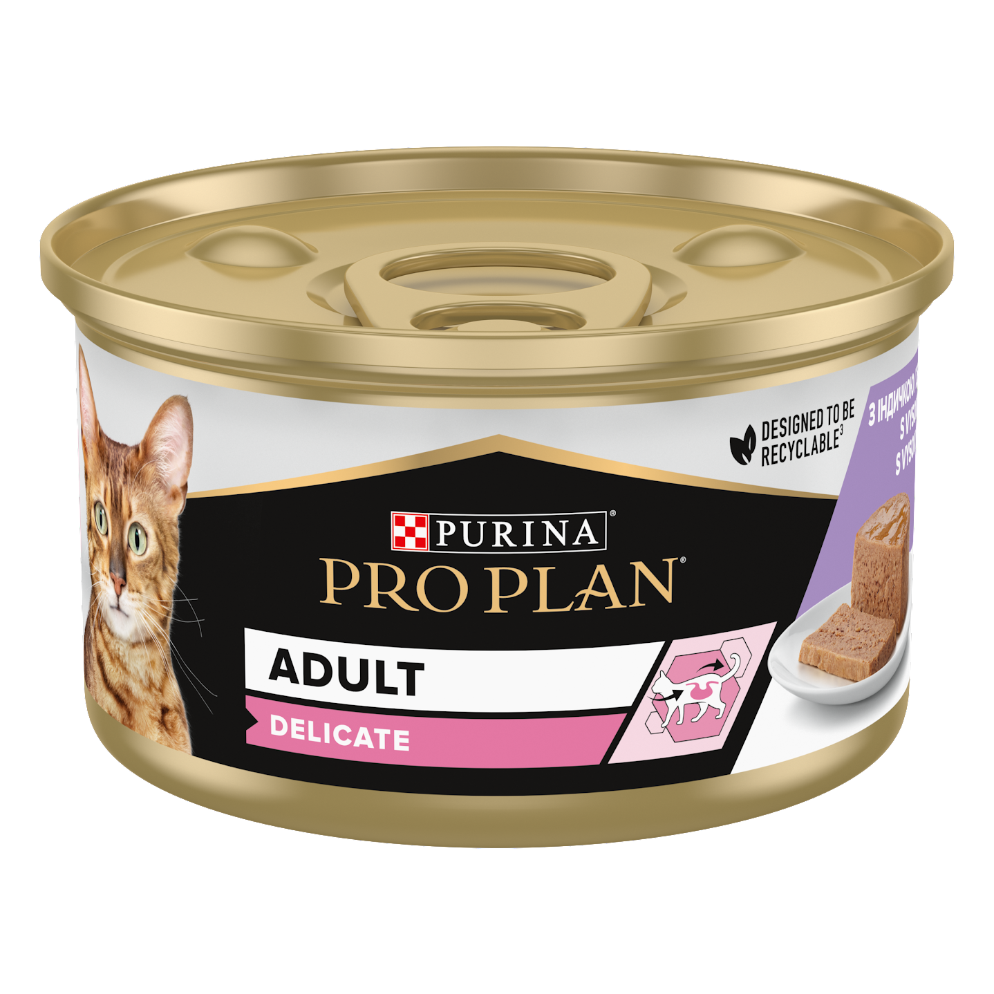 Полнорационный влажный корм с индейкой для взрослых кошек с чувствительным пищеварением. Представляет собой сбалансированный рацион, обеспечивающий организм питомца необходимыми питательными веществами.