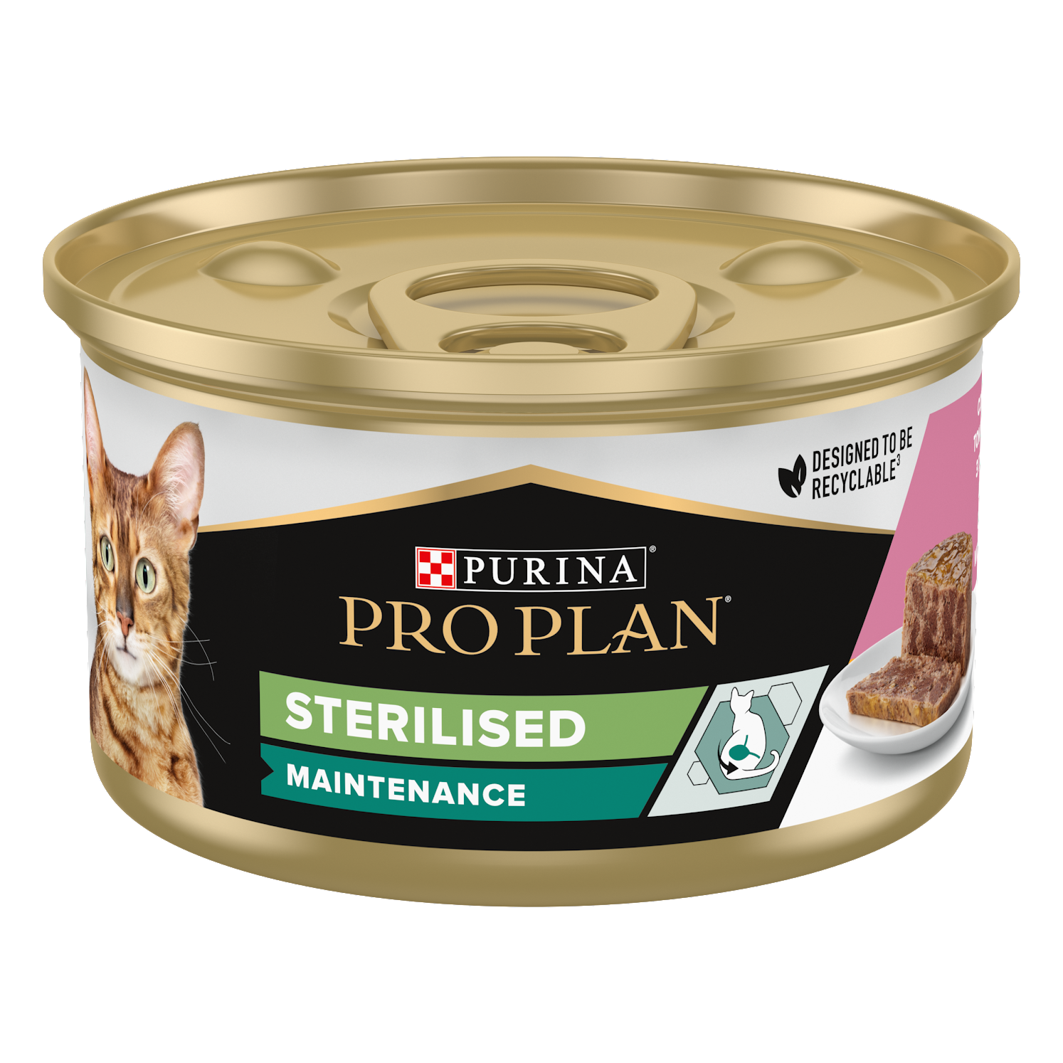 Полнорационный влажный корм с кусочками тунца и лосося в паштете для взрослых стерилизованных кошек. Представляет собой сбалансированный рацион, обеспечивающий организм питомца необходимыми питательными веществами.