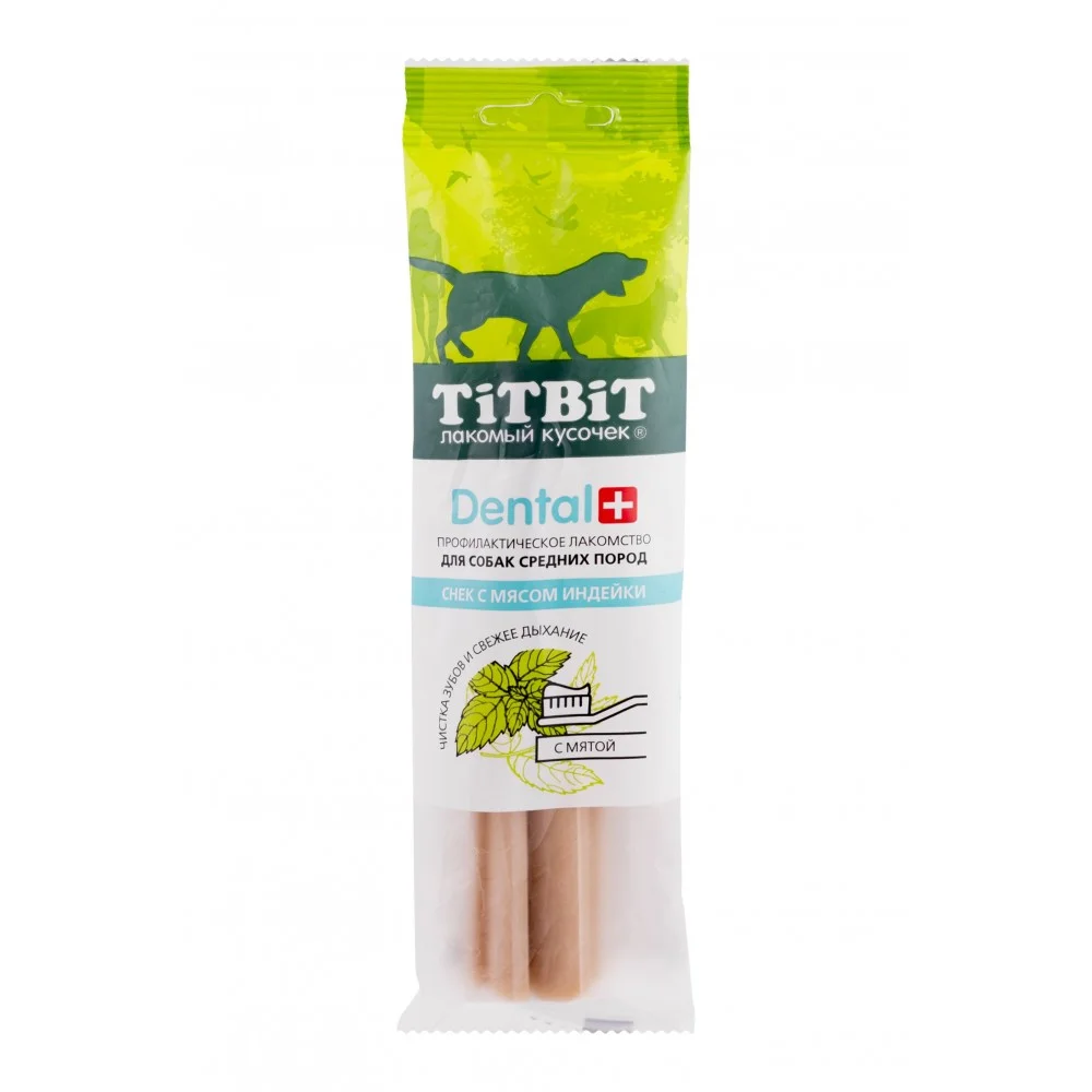 Профилактическое лакомство Dental+ Снек с мясом индейки для собак средних пород содержит мяту, которая оказывает антибактериальное воздействие. Ежедневное употребление этого лакомства способствует свежести дыхания, снятию мягкого зубного налета и снижению образования зубного камня у собаки.