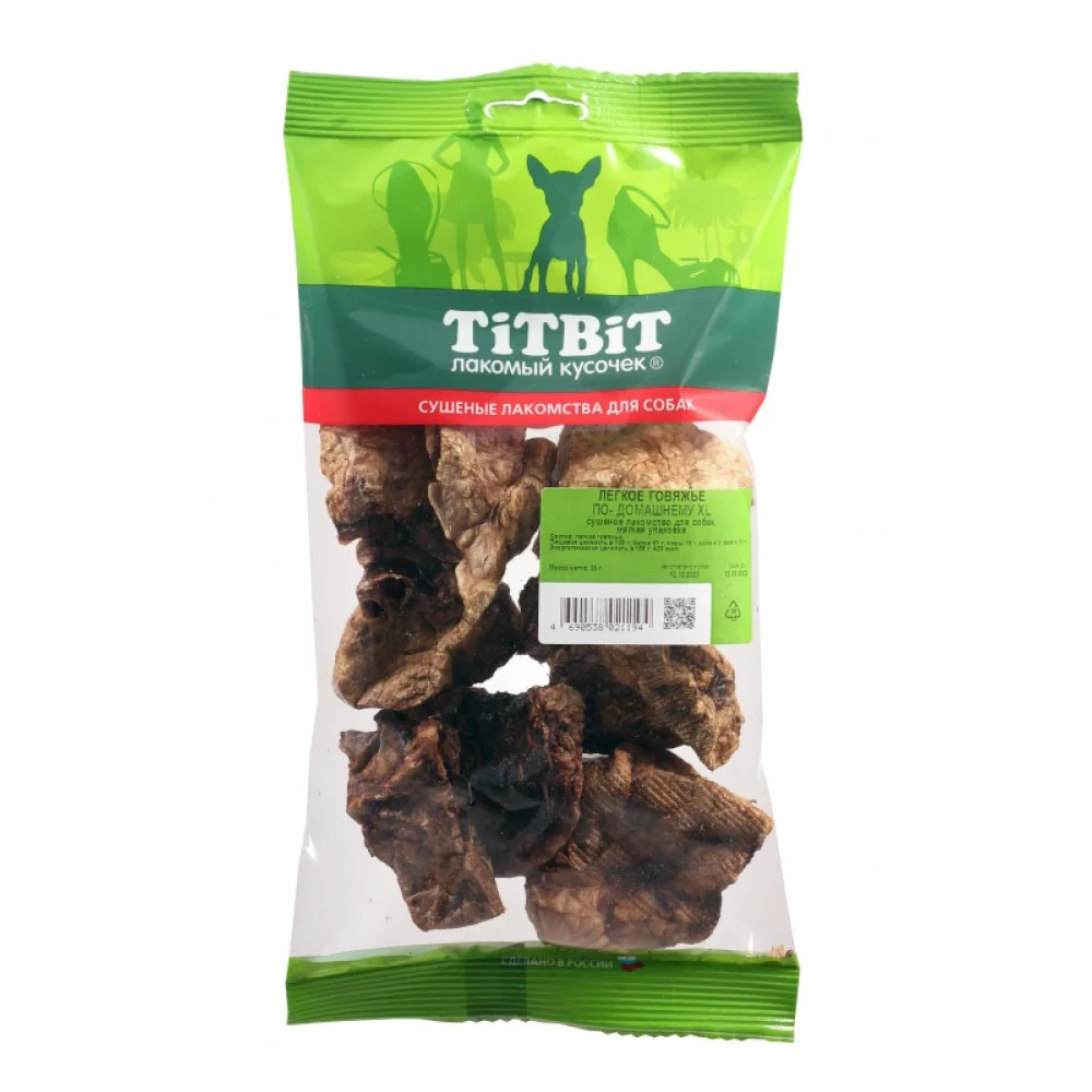 Кусочки высушенного говяжьего легкого приготовлены по щадящей технологии промывки, что позволяют сохранить всю насыщенность кровью и другими питательными веществами, благодаря этому легкое имеет натуральный мясной вид и максимально богато полезными компонентами. Высокое содержание микроэлементов и соединительной ткани дополняет удовольствие собаки от нежного лакомства. Легкие очень вкусны, малокалорийны и замечательно усваиваются организмом. Легкие содержат практически такой же набор витаминов, как и мясо, но зато гораздо менее жирные. Оказывают положительное воздействие на состояние кожи, шерсти и общий обмен веществ. Кусочки очень удобно использовать в качестве поощрения при дрессуре, и просто на прогулках. Для собак всех пород и возрастов. Особенно рекомендуется для собак с неполной зубной формулой и возрастными изменениями зубочелюстного аппарата. Благодаря вкусовым качествам и воздушной структуре является одним из самых любимых лакомств для наших четвероногих друзей.