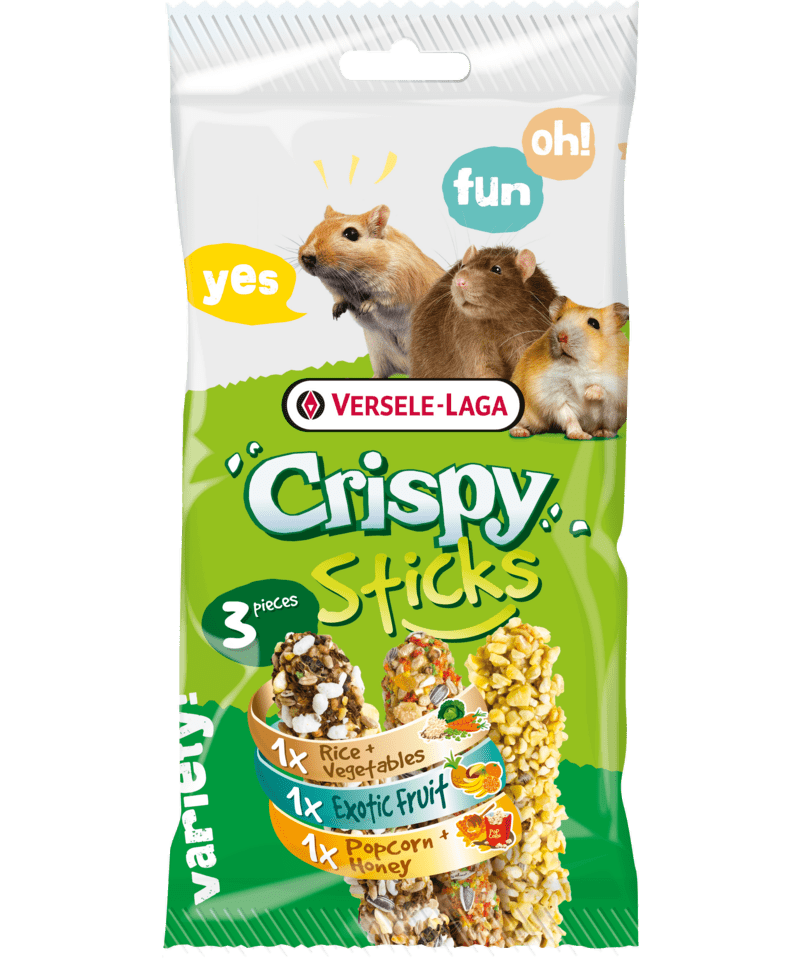 Лакомство для грызунов, запеченное в духовке, с тремя разными вкусами: экзотические фрукты, рис с овощами, попкорн и мед.