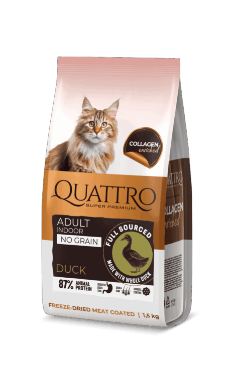 QUATTRO adult indoor duck, сухой корм для взрослых кошек с уткой
